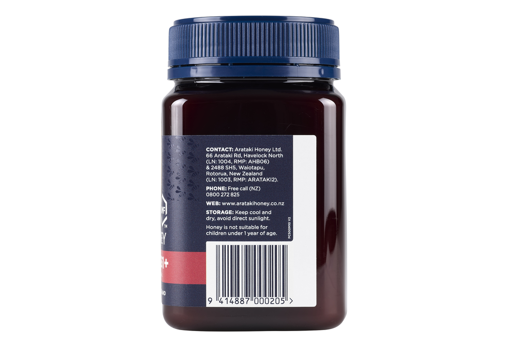 Arataki Manuka Honey UMF™ 10+ is produced in New Zealand by honeybees from the nectar of the native New Zealand Manuka bush (Leptospermum scoparium).