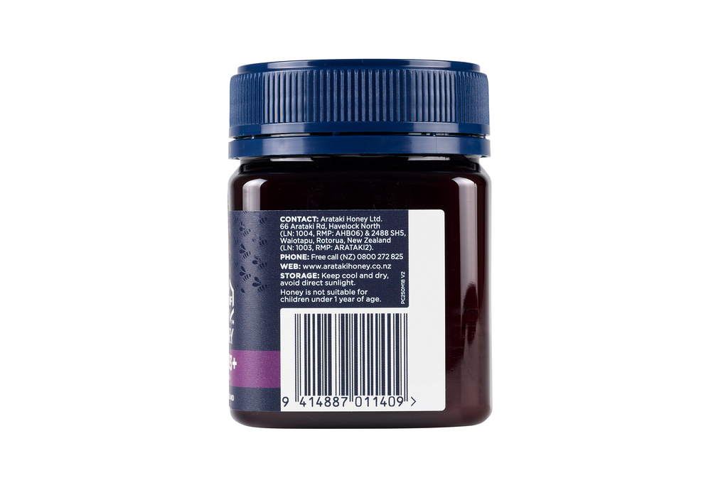 Arataki Manuka Honey UMF™ 18+ is guaranteed to contain the three unique compounds of genuine Manuka Honey (MGO, Leptospermum, DHA) and is tested by an independent scientific laboratory. The UMF grading system appraises natural markers found in Manuka honey, and assures purity & quality. Please see www.umf.org.nz for further information.