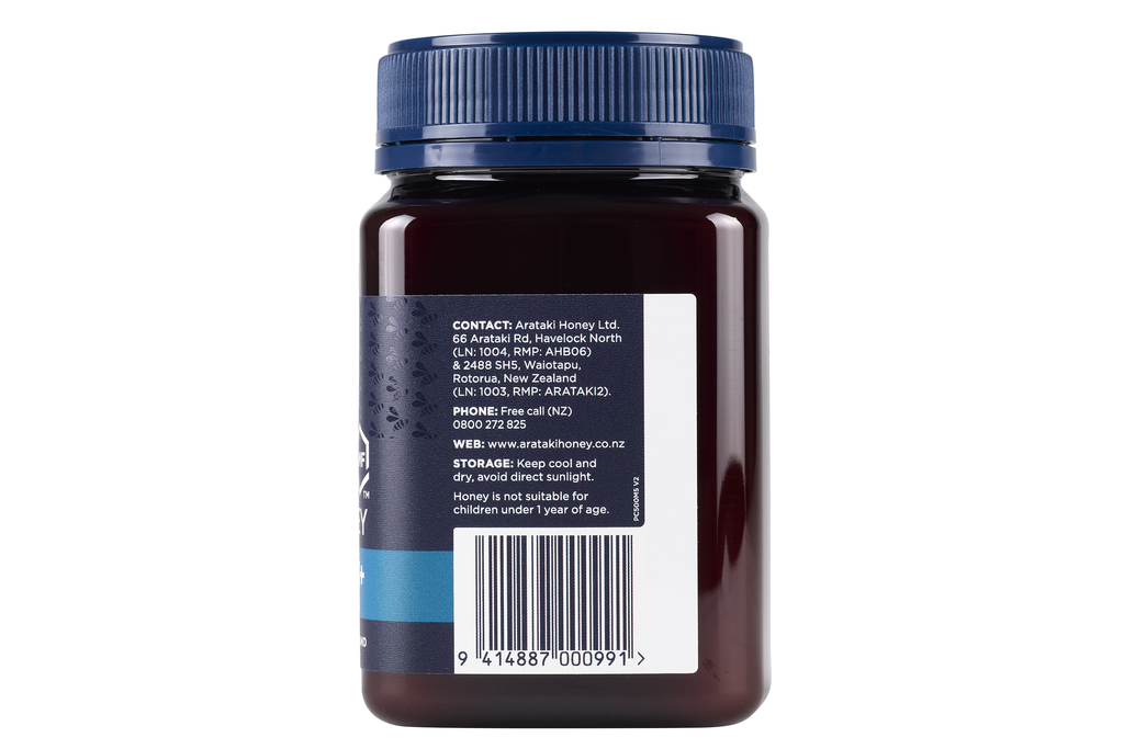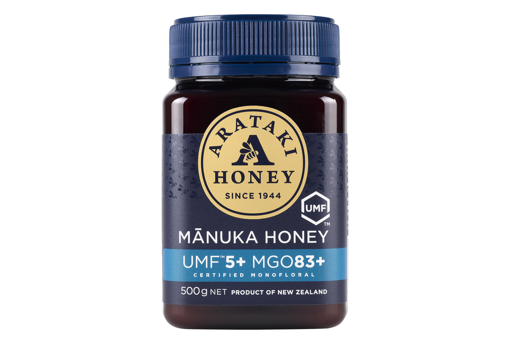 Arataki Manuka Honey UMF™ 5+ is produced in New Zealand by honeybees from the nectar of the native New Zealand Manuka bush (Leptospermum scoparium).