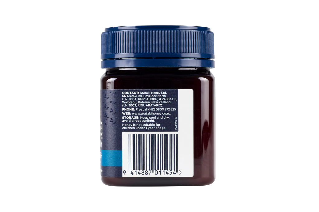 Arataki Manuka Honey UMF™ 5+ is produced in New Zealand by honeybees from the nectar of the native New Zealand Manuka bush (Leptospermum scoparium).